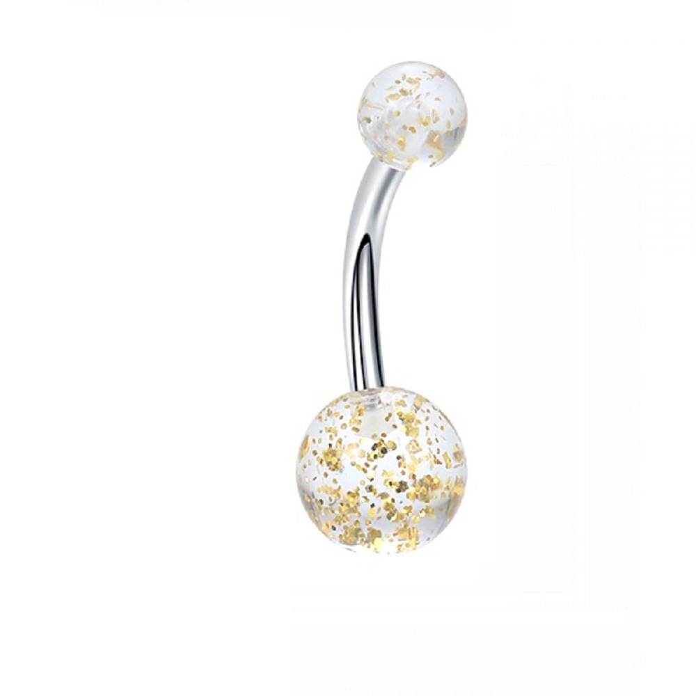 - Обици на пъпа с акрилни топчета.