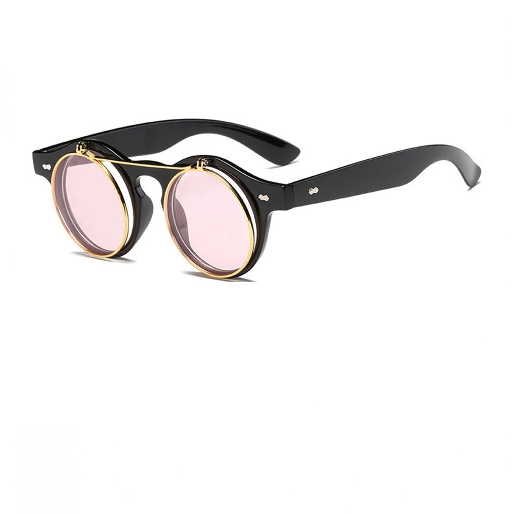 - Двойни очила розови прозрачни с вдигащи се капаци на предните стъкла за екстравагантна визия.